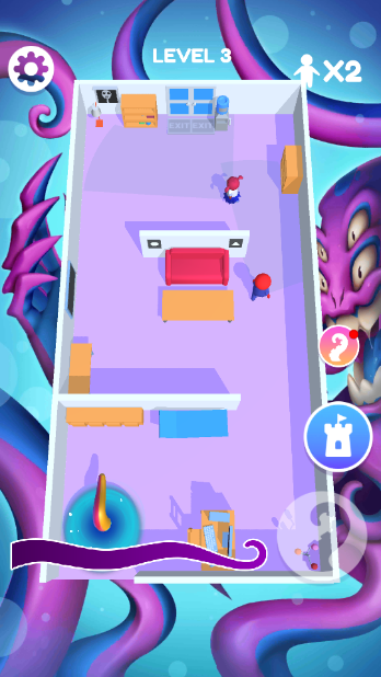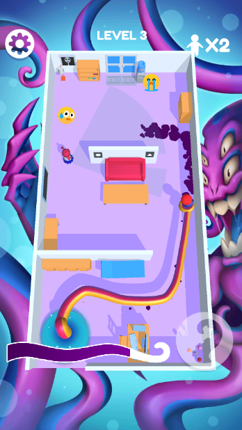 1、游戏采用关卡的形式挑战,玩家在游戏中需要操作触手,每关都需要抓取任务目标数量的人;