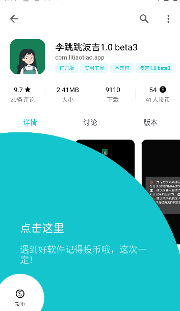2、在下载详情页的左下角,下图位置可以找到【投币】按钮。