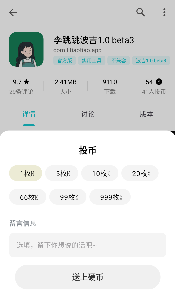 3、点击进入投币环节以后,输入自己想要投币的数量,然后留言。