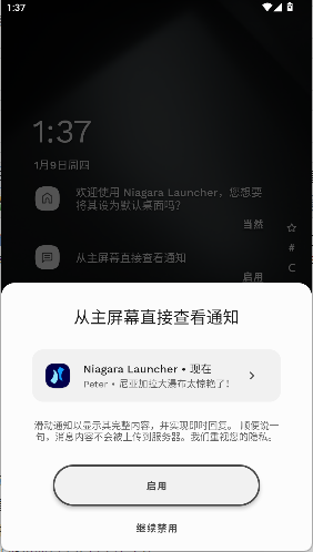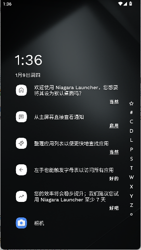 niagara launcher是一款功能十分强大的辅助app,使用的时候就能够添加一些常用的应用到主界面上,这样下次打开的时候就会变得更加的方便,不仅如此,软件还能够把平时不经常用的软件进行隐藏起来,只有输入密码才能够找到的,另外app使用起来也非常简单,第一次下载的用户都是能够上手进行操作,没有任何的限制。