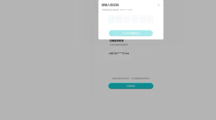 3、到这一步需要先验证已经绑定的手机号,获取验证码。