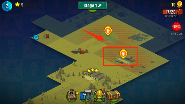 1、您可以通过点击地图屏幕上的手标记图标来挑战舞台。油槽标记是消耗油槽(体力)即可完成探索的区域。