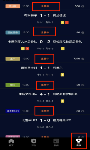 2、点开右下角赛事,可以看到全部比赛的赛程列表。