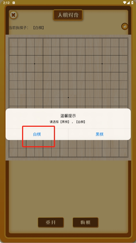 2、进入对战后,选择自己的棋子颜色,黑色或者白色。