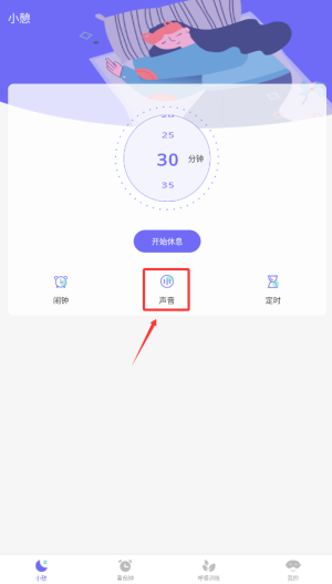 1、打开小牛睡眠软件,进入界面点声音。