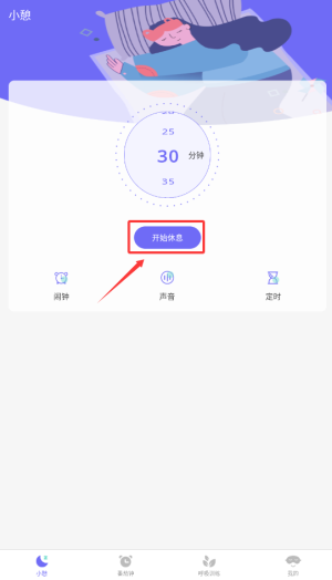 3、选择睡眠时间后点、开始休息。