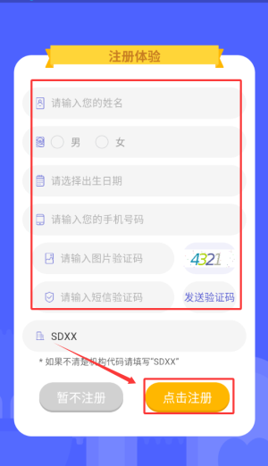 3、输入名字,手机号码,等待验证码即可立即注册。