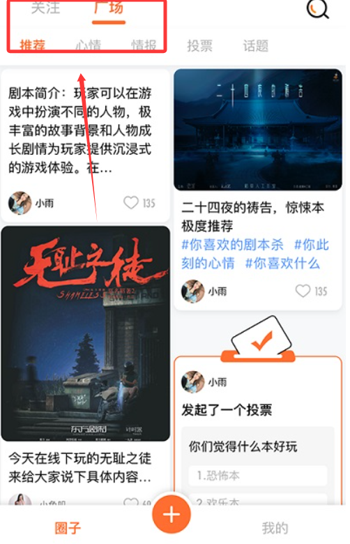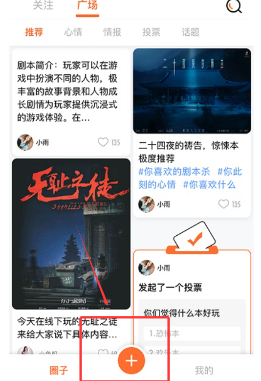2,点击中间的加号可以发布您觉得比较好的剧本。