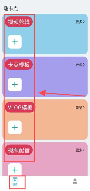 1、打开软件后,可以看见视频剪辑、卡点模版、VLOG模版和视频配音等。