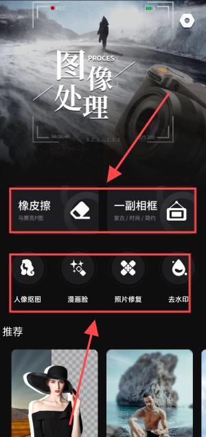 1、可以给照片打马赛克,加相框还有抠图等功能。