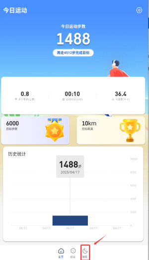 1、打开老王爱走路软件,进入界面点击右下角睡眠。