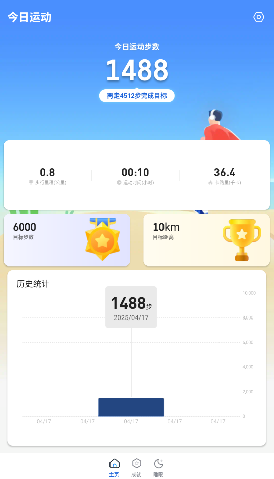 2、智能计步系统后台持续运行,无需唤醒APP即可准确记录步数。
