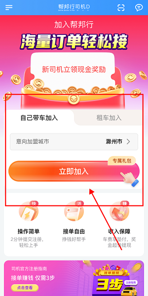 1、打开帮邦行司机Dapp,选择加入方式点击“立即加入”。
