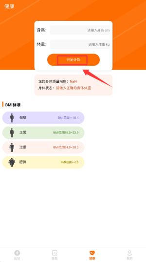 1、首次使用需填写基础身体数据,系统将智能推荐适合的运动强度方案。