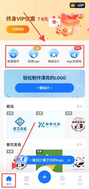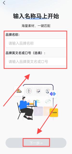 1、进入一键设计界面便捷输入品牌名称和标语等待系统自动生成多个备选设计方案。