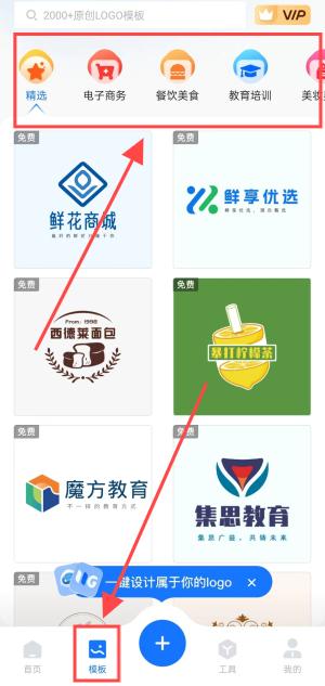 2、选择心仪模板进入编辑界面自由调整图形颜色等细节参数优化标志最终呈现效果。