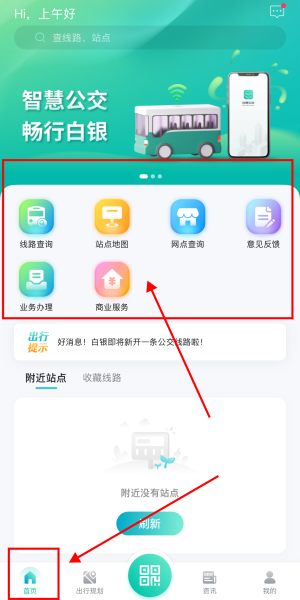 3、在首页中可以查看到线路查询、站点地图查询等信息。