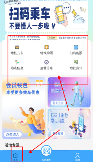 3、在首页中可以查看地铁云卡、地铁购票等服务。