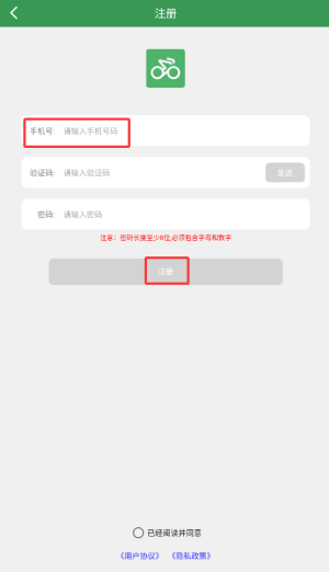 3、输入手机号码,获取验证码,设置密码,即可登录。