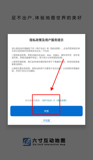 1、打开六寸互动地图app,点击“同意”。