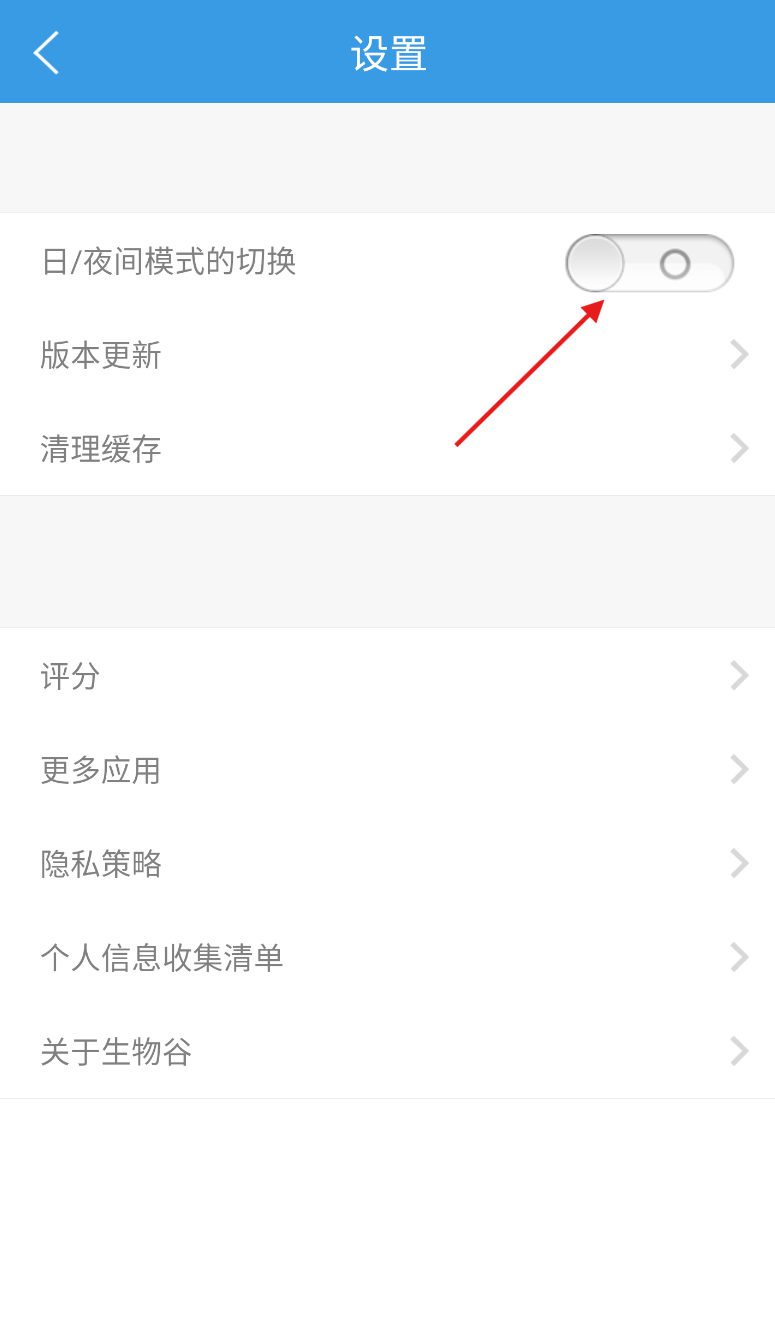 3、点击日/夜间模式模式切换,即可切换为夜间模式。