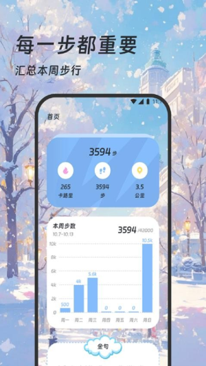 1、可视化数据分析:通过柱状图与趋势图清晰呈现用户每周运动步数变化,帮助您快速掌握运动规律。