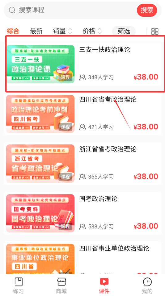 3、可以进入课程页面购买书籍。