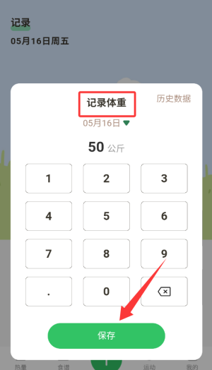 3、输入当前测量的体重数值,确认无误后点击保存完成记录。