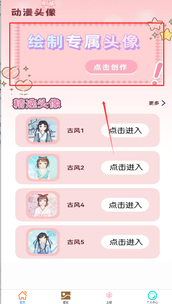 1、进入首页,可以按照选项选择专属头像,点击进入后可以上传个人图片设置头像。