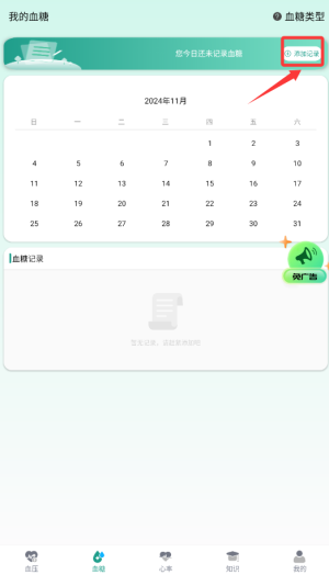 2、点击右上角"新增记录"图标,进入血糖数值录入界面。