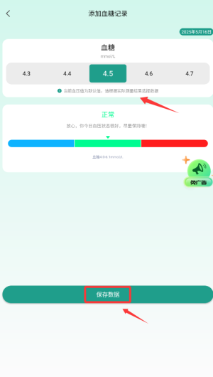 2、每日定时测量后及时录入数据,系统会自动保存并分析最新指标。