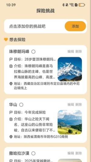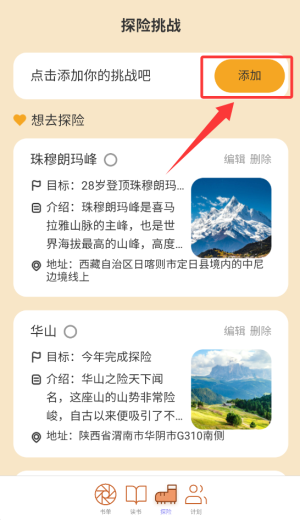 2、点击"添加"按钮,开始编辑本次探险活动信息。