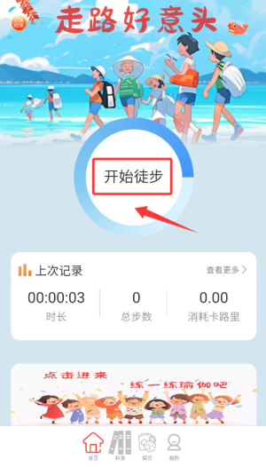 1、启动应用后,在首页点击"开始徒步模式"按钮开始实时计步。