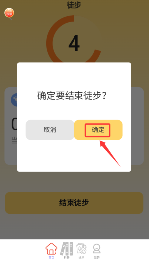 3、完成徒步后点击"结束记录",保存本次运动的详细统计信息。