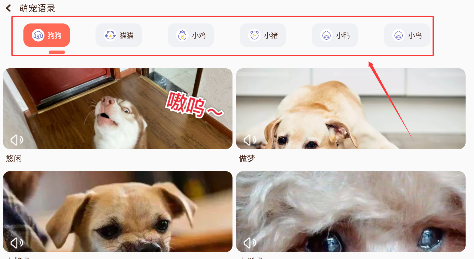 3、可以在萌宠语录内,选择宠物类别,可以查看宠物语录,了解宠物需要表达的话语。