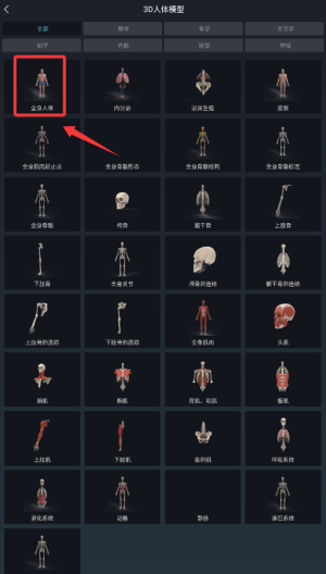 2、通过分类或搜索查找目标人体结构模型并点击查看。