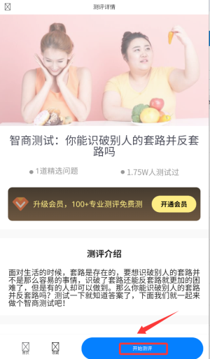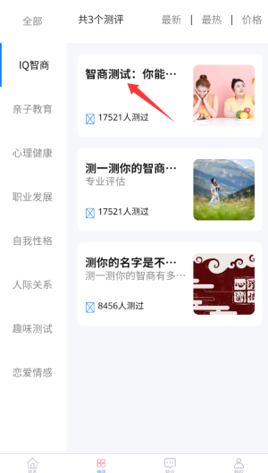 2、浏览各类测试项目,点击"智商评估"进入测试说明页面。