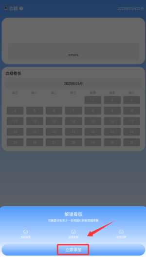 2、点击"立即添加"按钮,进入血糖数值录入界面。