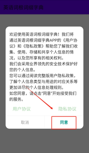 1、点击同意进入应用界面,即可开始探索丰富的学习内容,享受便捷的英语学习体验。