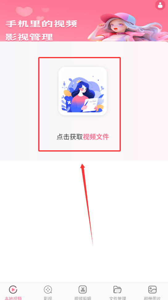 1、进入首页,按照选项选择点击获取视频,即可观看内容。