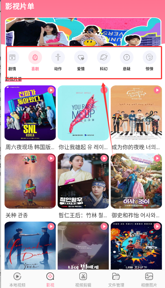 2、进入影视片单,按照选项选择喜欢的影片,点击进入即可观看。