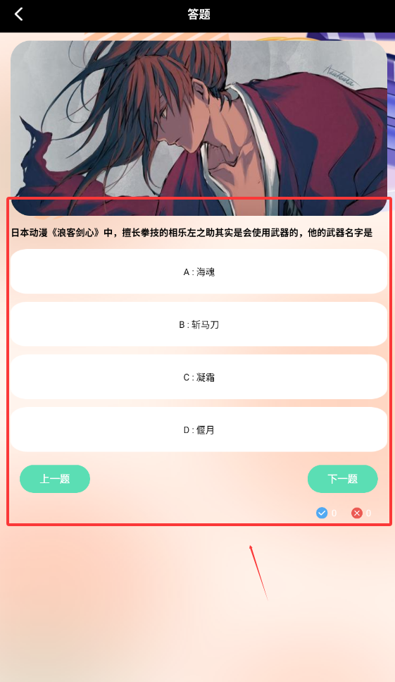 3、点击进入答题内,按照选项选择正确答案,自动进入下一题,点击即可。
