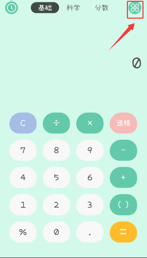 1、启动分数计算器APP后,点击界面右上角的扩展菜单按钮,查看全部功能选项。