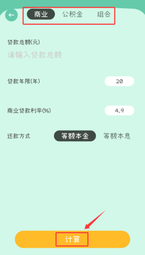 2、使用房贷计算器时只需输入贷款金额和期限,系统立即自动生成每月还款明细和利息总额。