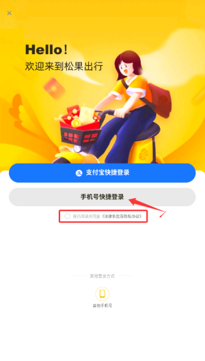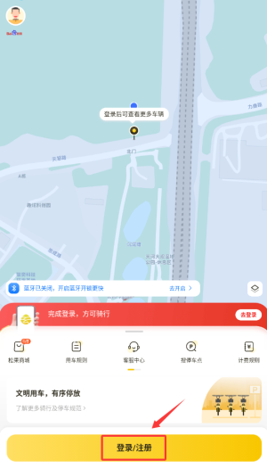 1、启动松果电单车APP后,在首页点击"登录注册"进入账户登录页面。