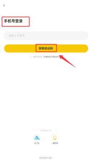 2、选择"手机号登录"方式,系统将自动跳转至验证界面。