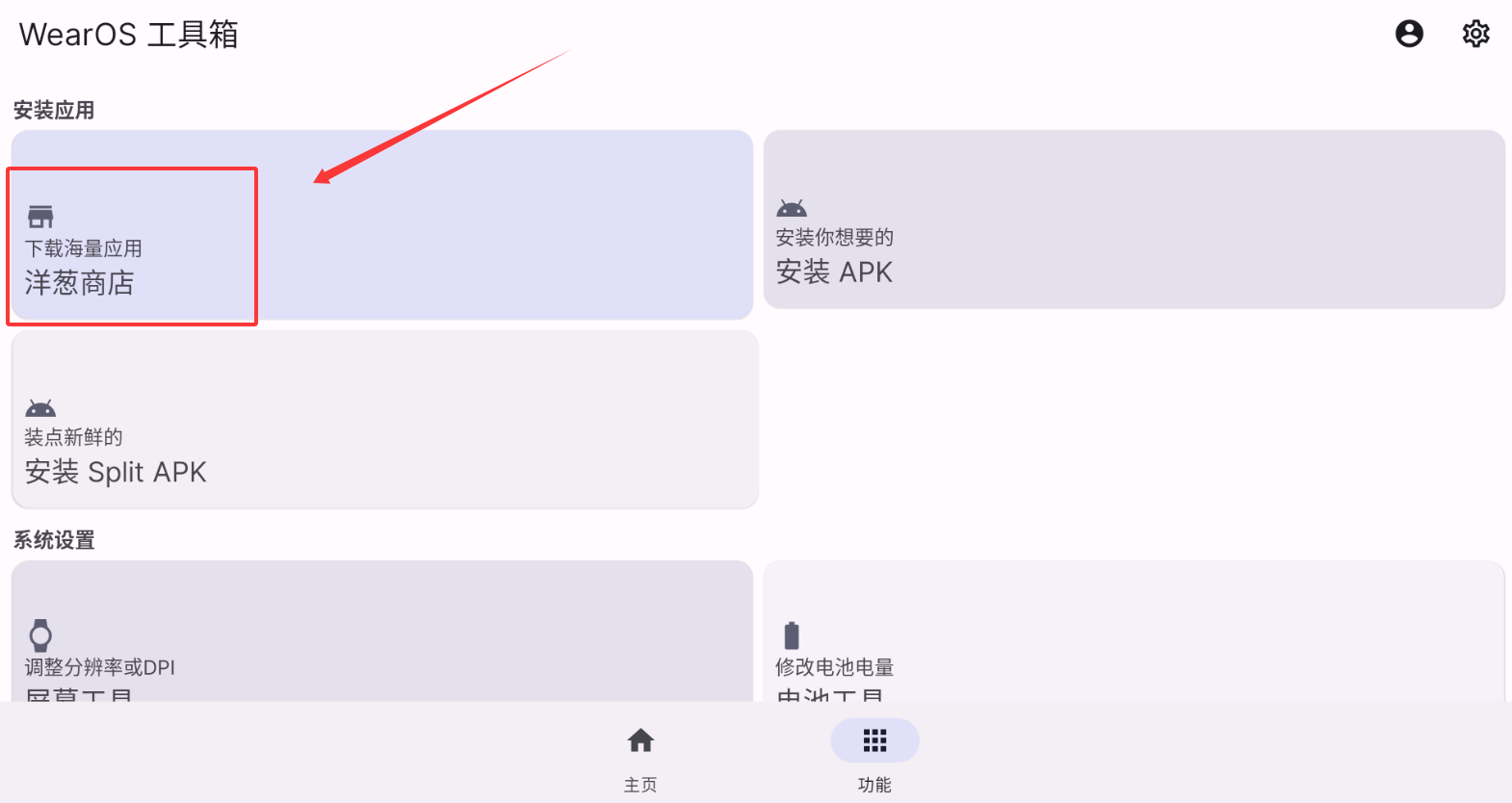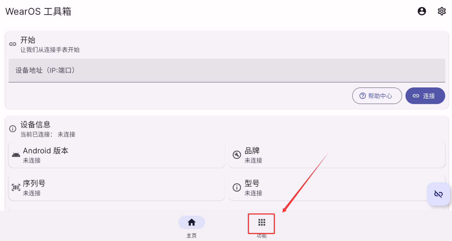 1、启动WearOS工具箱后,在主页右下角点击"更多功能"按钮,进入扩展服务管理界面。