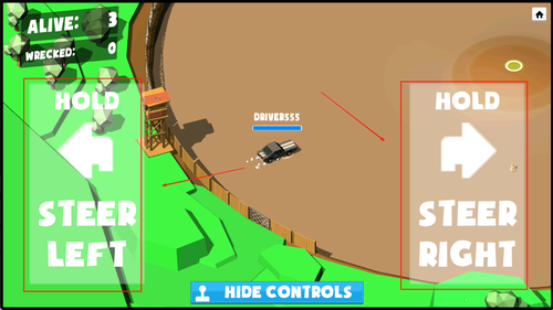 2、屏幕两侧是控制车辆转向漂移,左上角显示当前车辆状态和剩余对手数量。