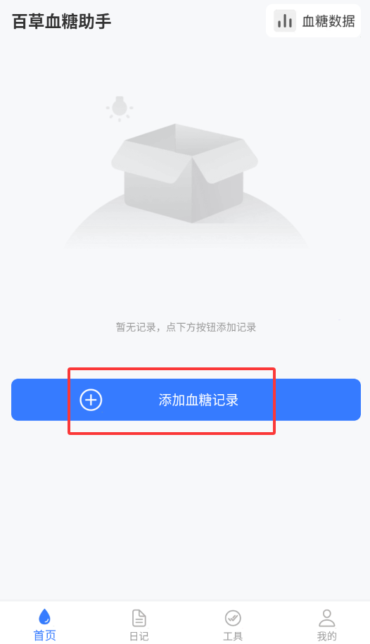 1、启动健康监测应用,在首页功能列表中点击"血糖记录"选项进入数据录入界面。