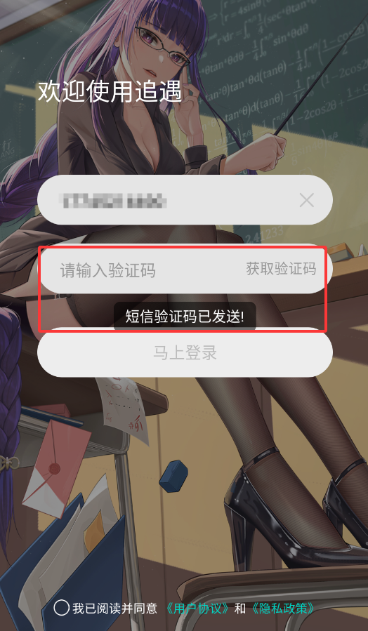 1、启动追遇APP后,在注册页面输入本人有效的手机号码,确保能正常接收短信。
